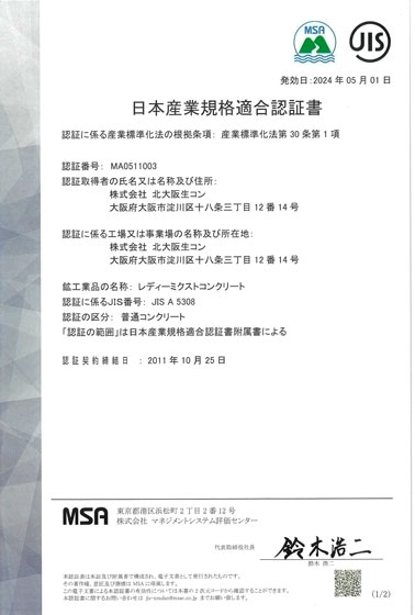 認証 JIS A5308